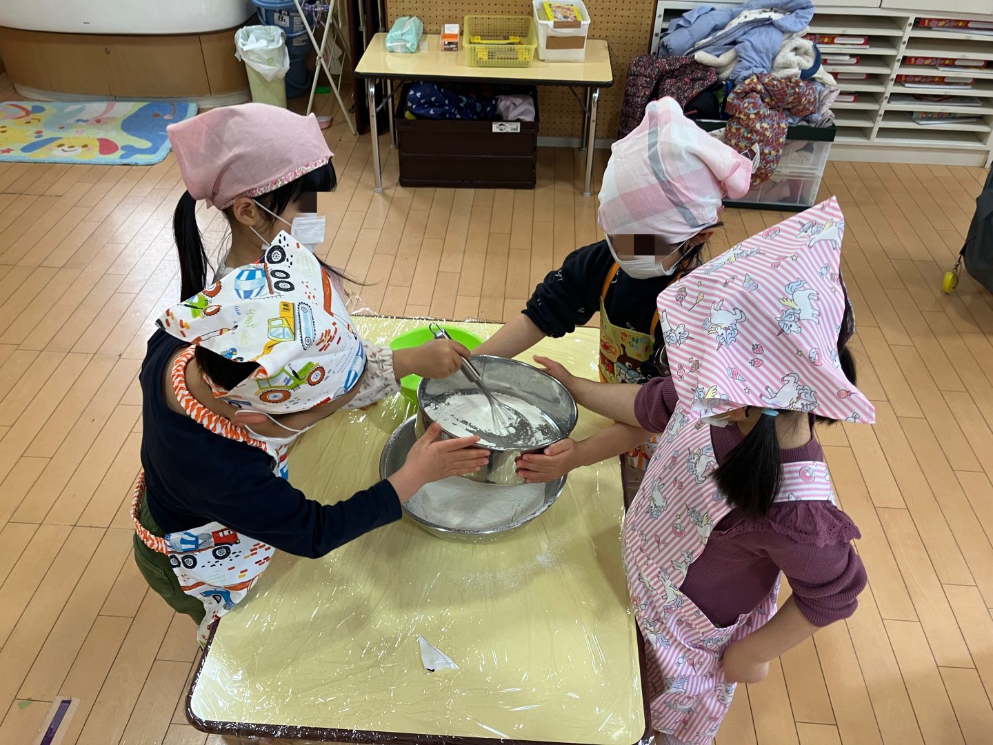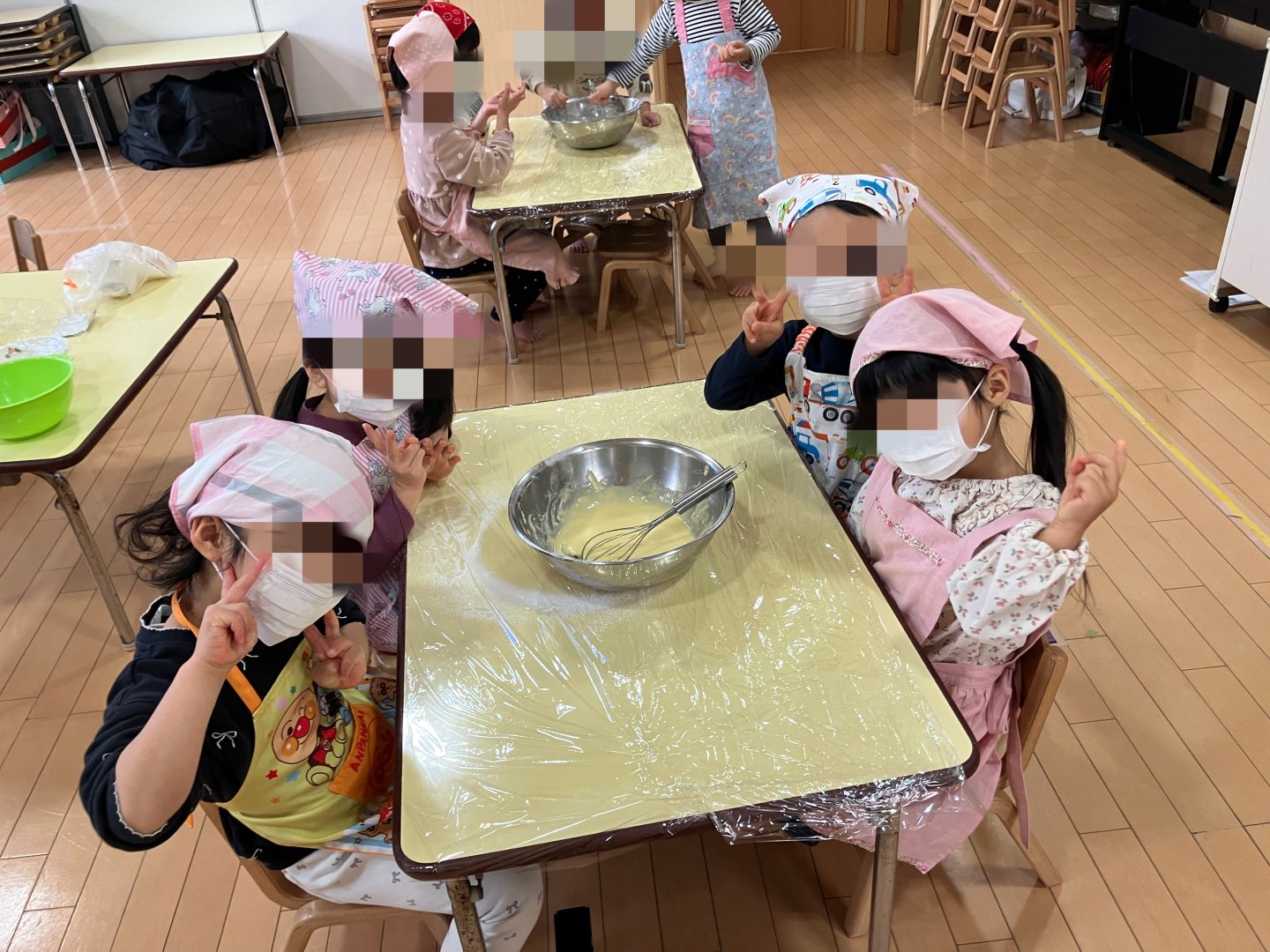 発表会の劇「ぐりとぐら」のイメージを膨らますためにクラスでカステラ作りをしました!