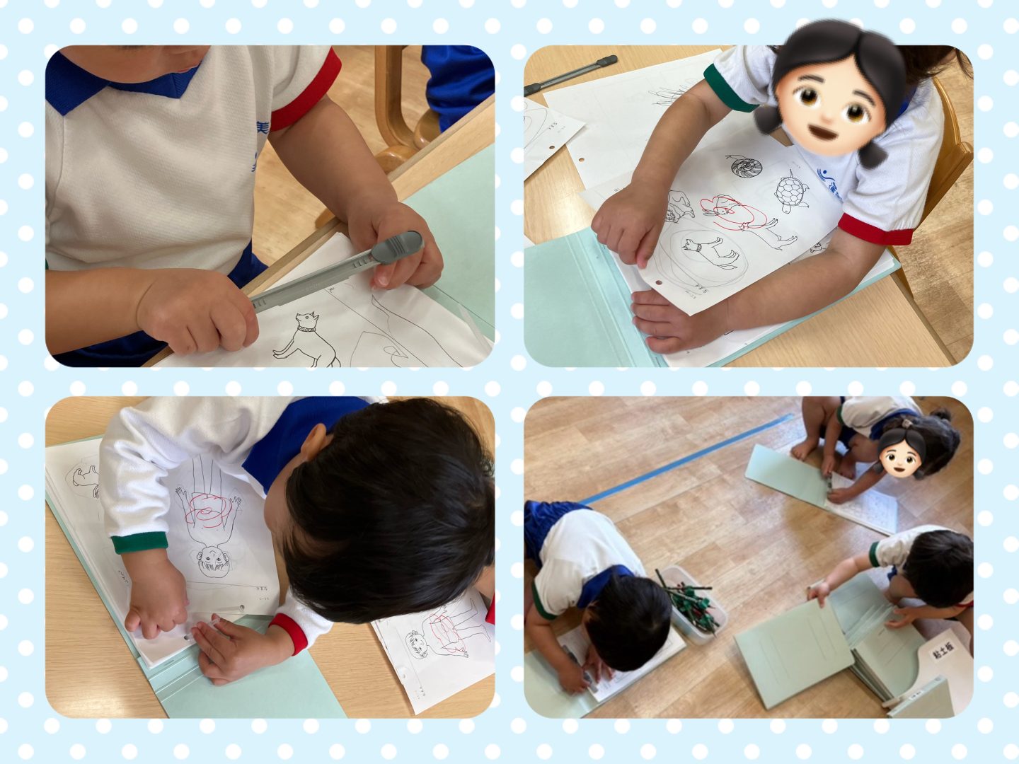 穴に通す際に用紙が破れてしまう時もありますが、子どもたちのやる気や集中して取り組む姿を応援しながら見守ってきました。