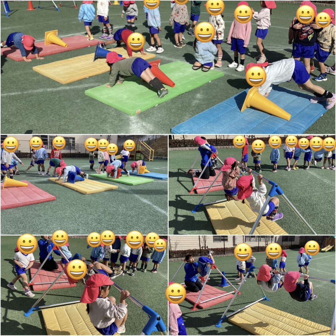 クラス全員が片足でジャンプしたり鉄棒でぶら下がりができるようになってきて全体として身体作りができてきている様子です。