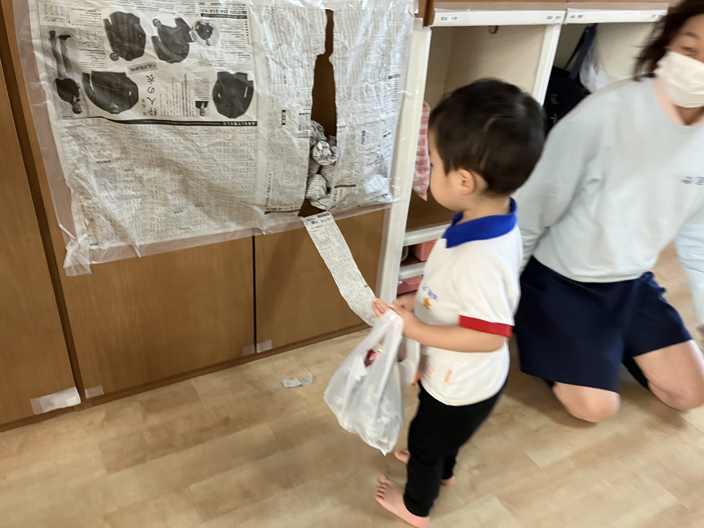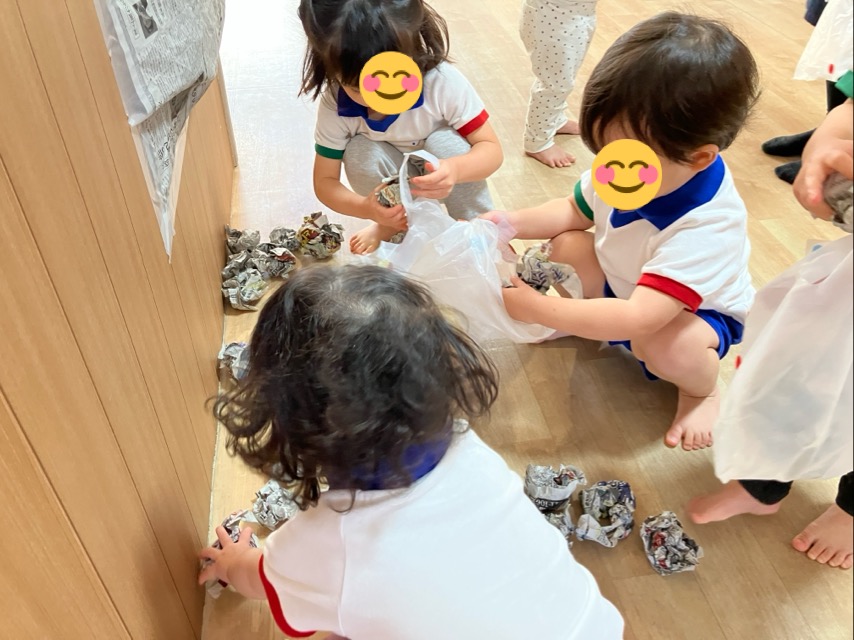 中からたくさんの新聞豆が出て来て、大興奮の子どもたちでした!