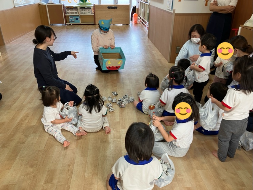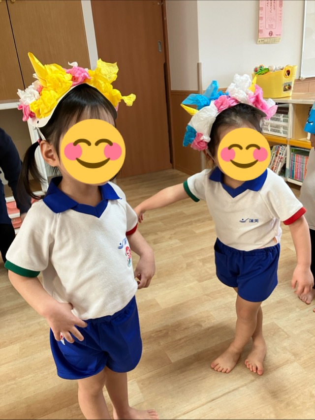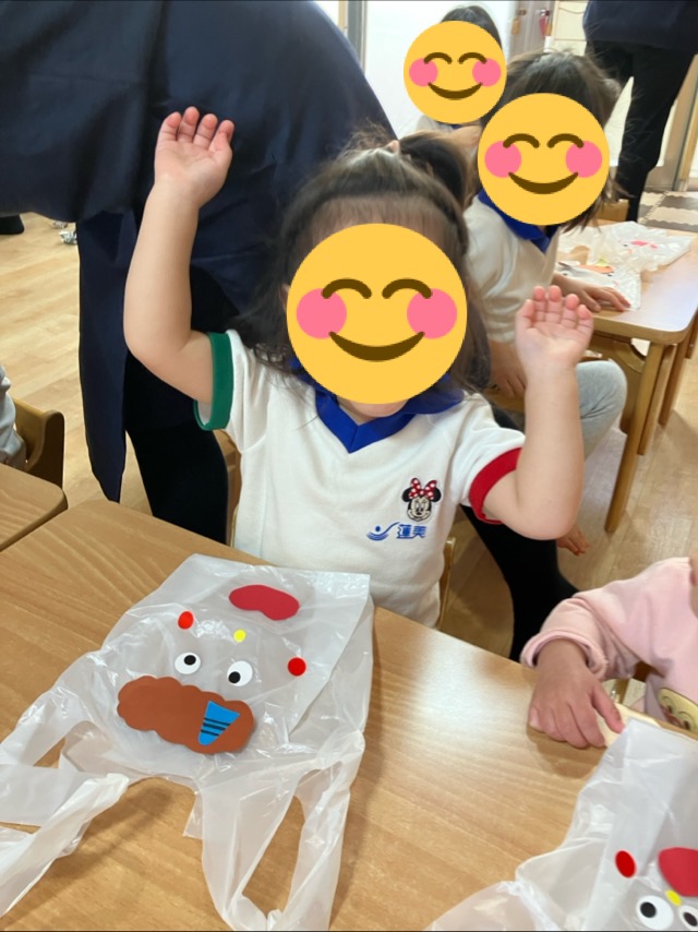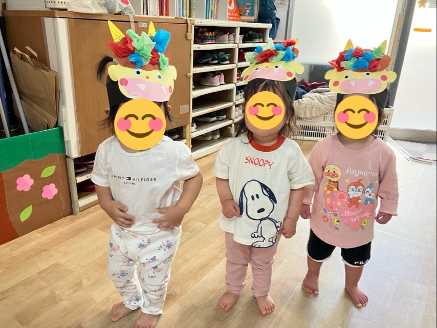 ということで、自分たちで作った鬼のお面を付けて、みんなで楽しく「おにのパンツ」を踊りました♪