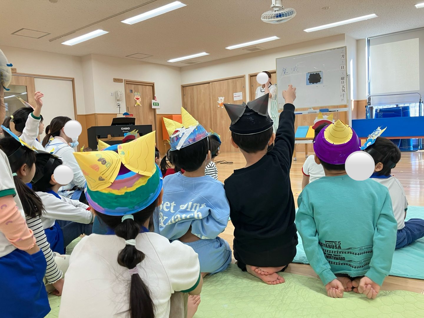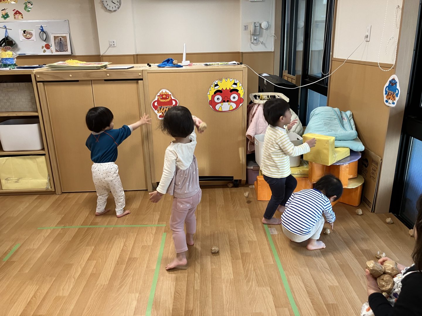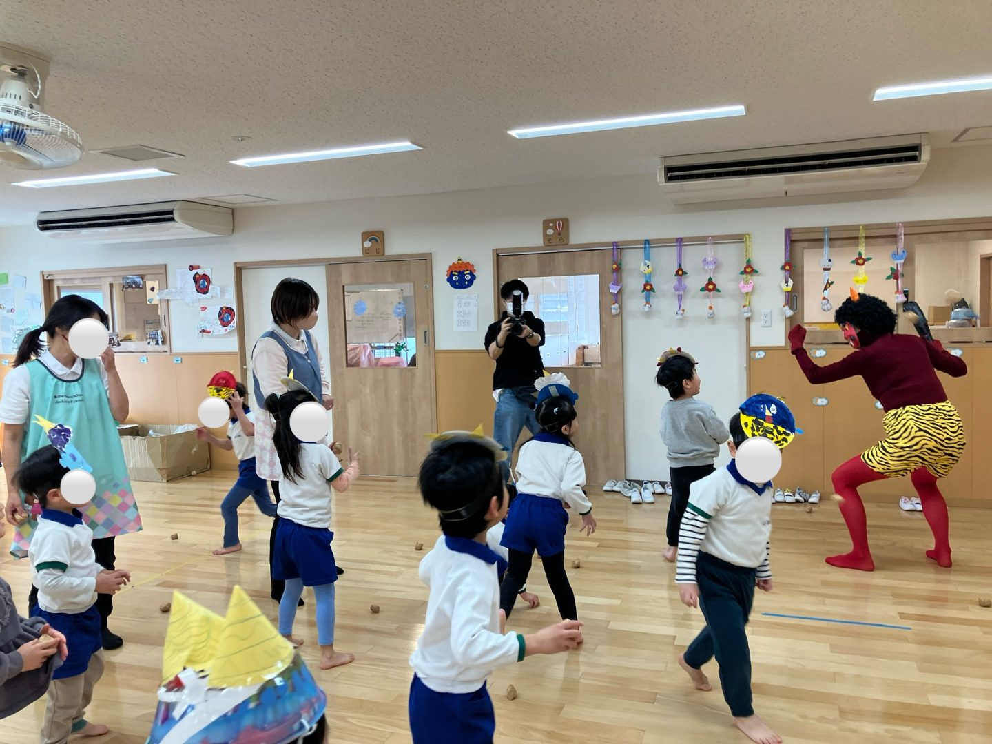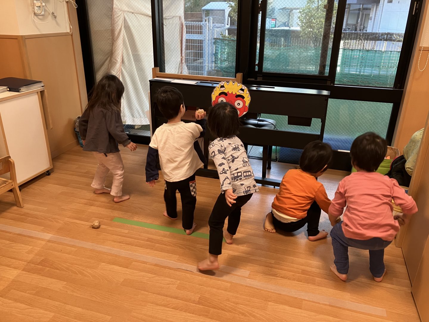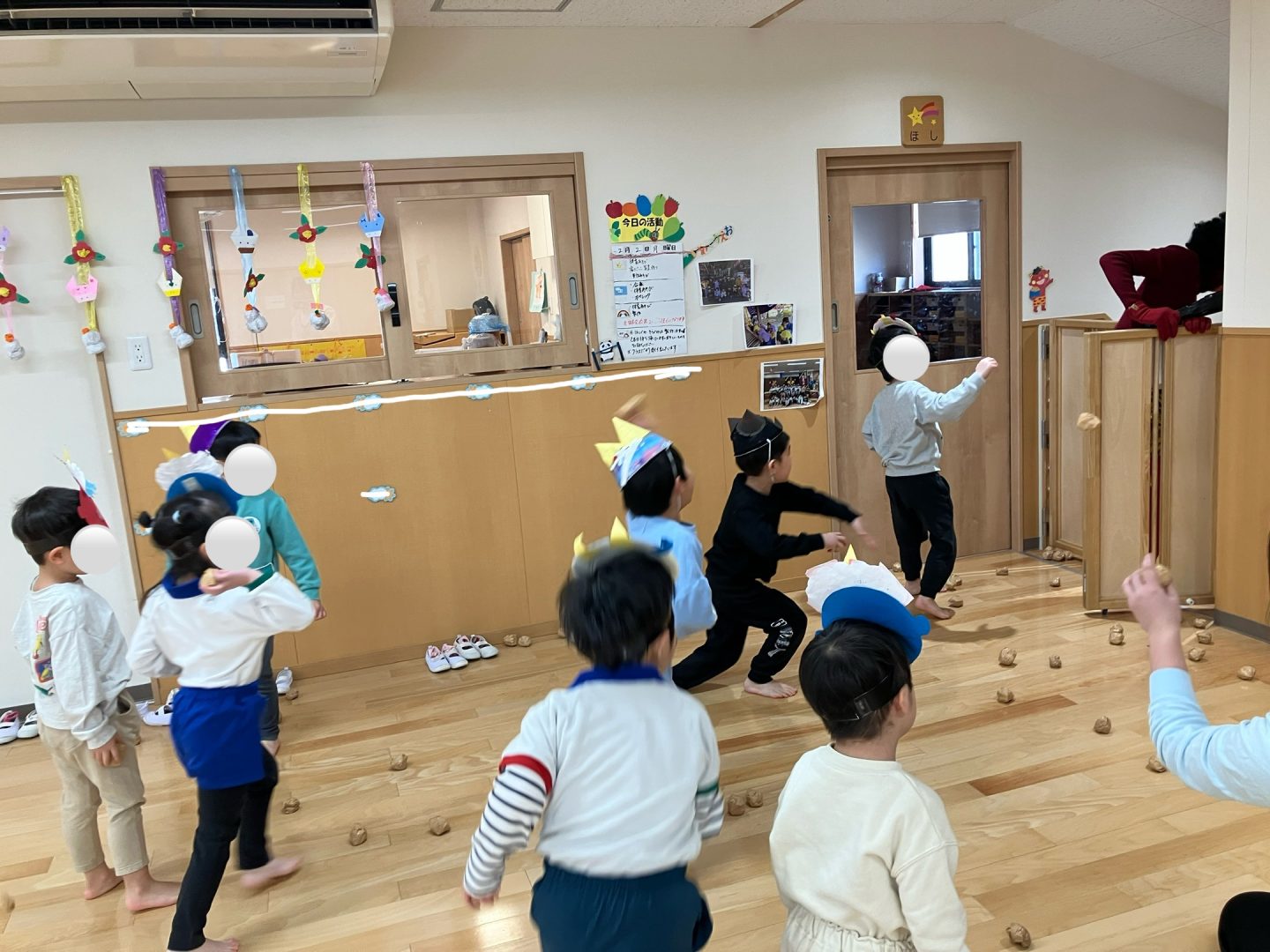 そのあと、幼児クラスはホールで豆まきです!