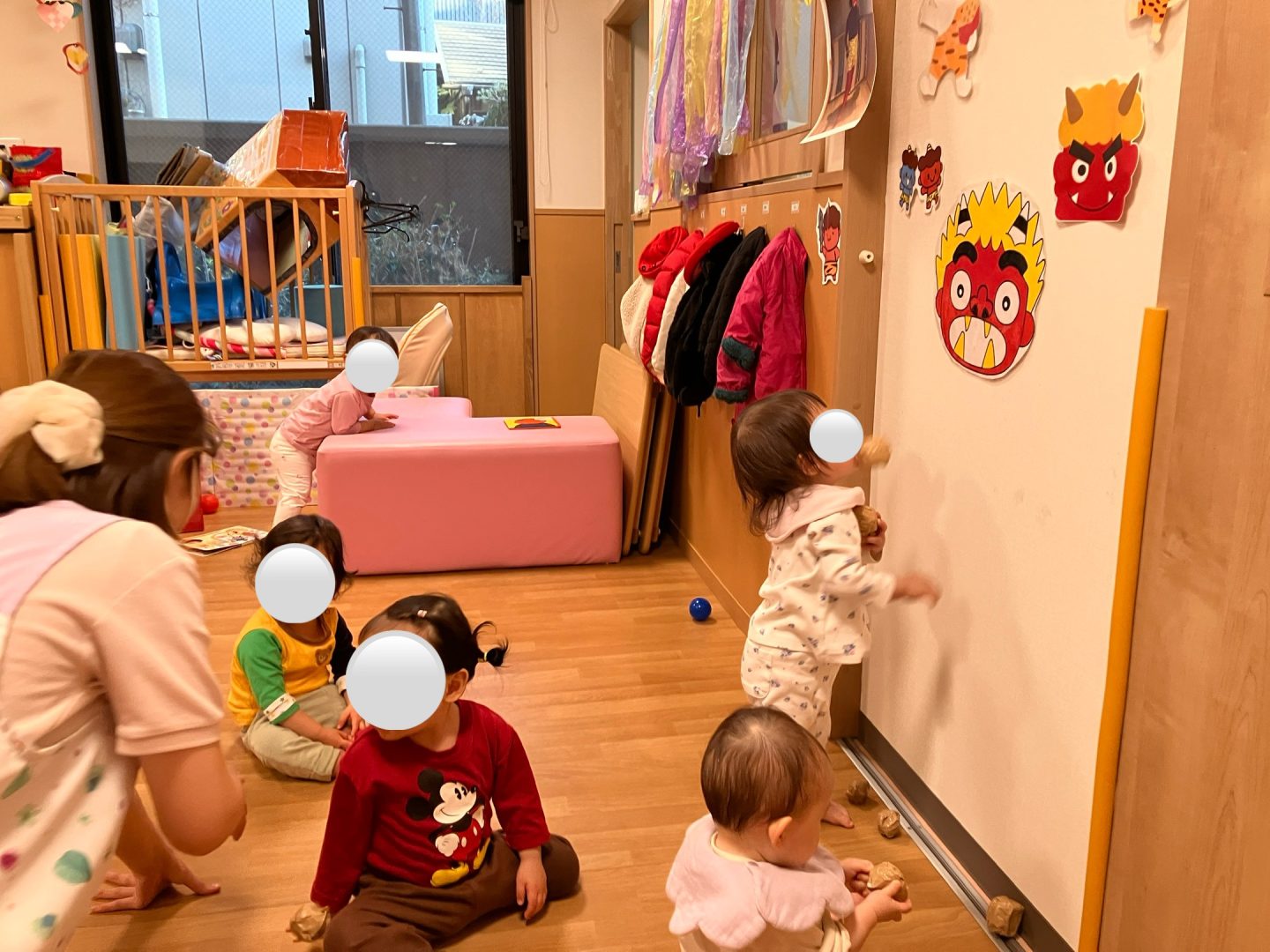 もちろん、乳児クラスも豆まきごっこをしましたよ。