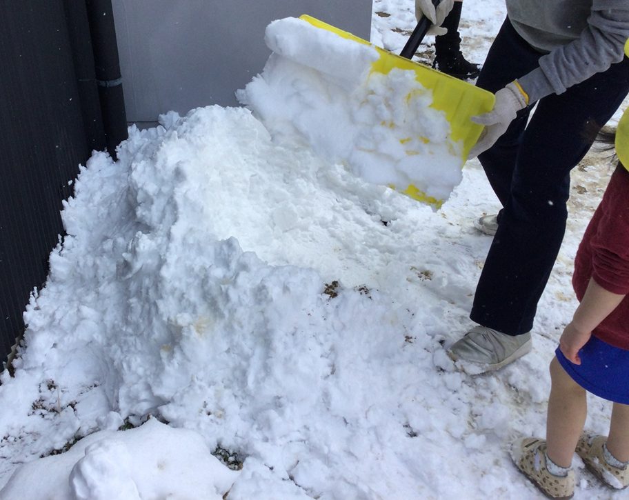 お昼過ぎにはほとんど溶けてしまいましたが、2歳から5歳は戸外での雪あそび。