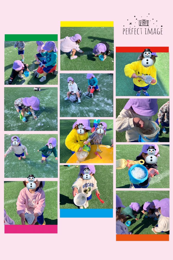 園庭に出ると雪と氷を見て大喜び!!