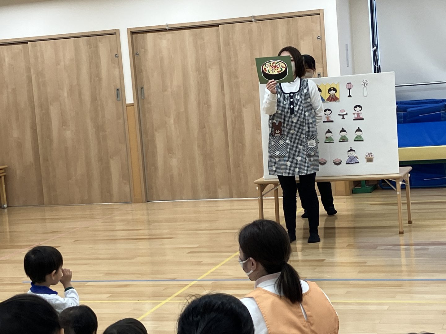 クイズのあとは、みんなで『うれしいひなまつり』を歌います。