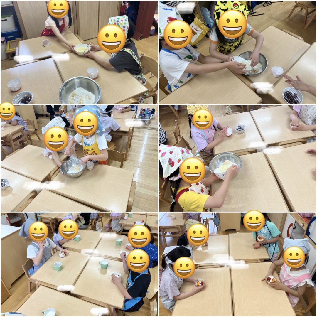 いちごのマフィンの生地は皆で協力して作りました。