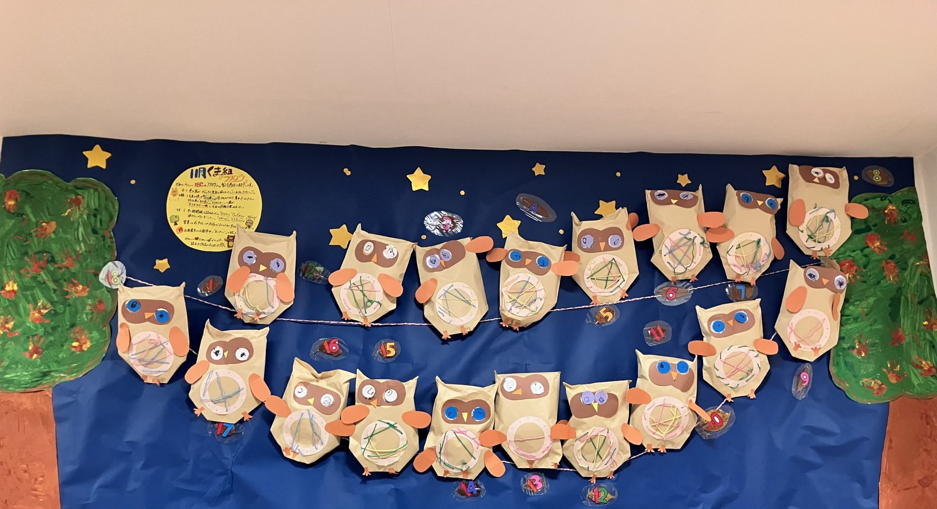 5月の壁面です。わかば組は こいのぼりを、めばえ組は金太郎を模して製作しました。