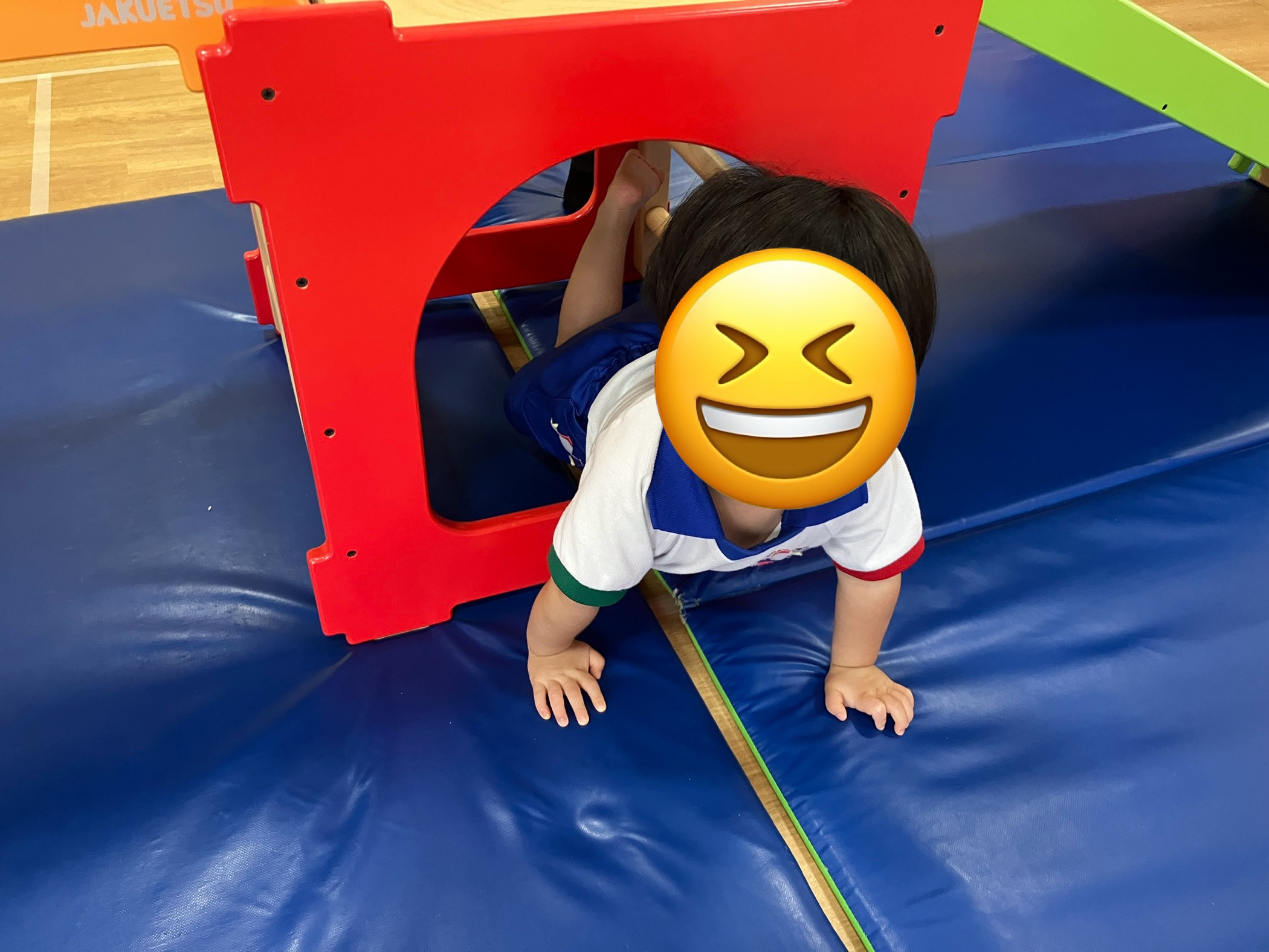 はしごを登った後は、ハイハイやお尻歩きで前へ進みます!