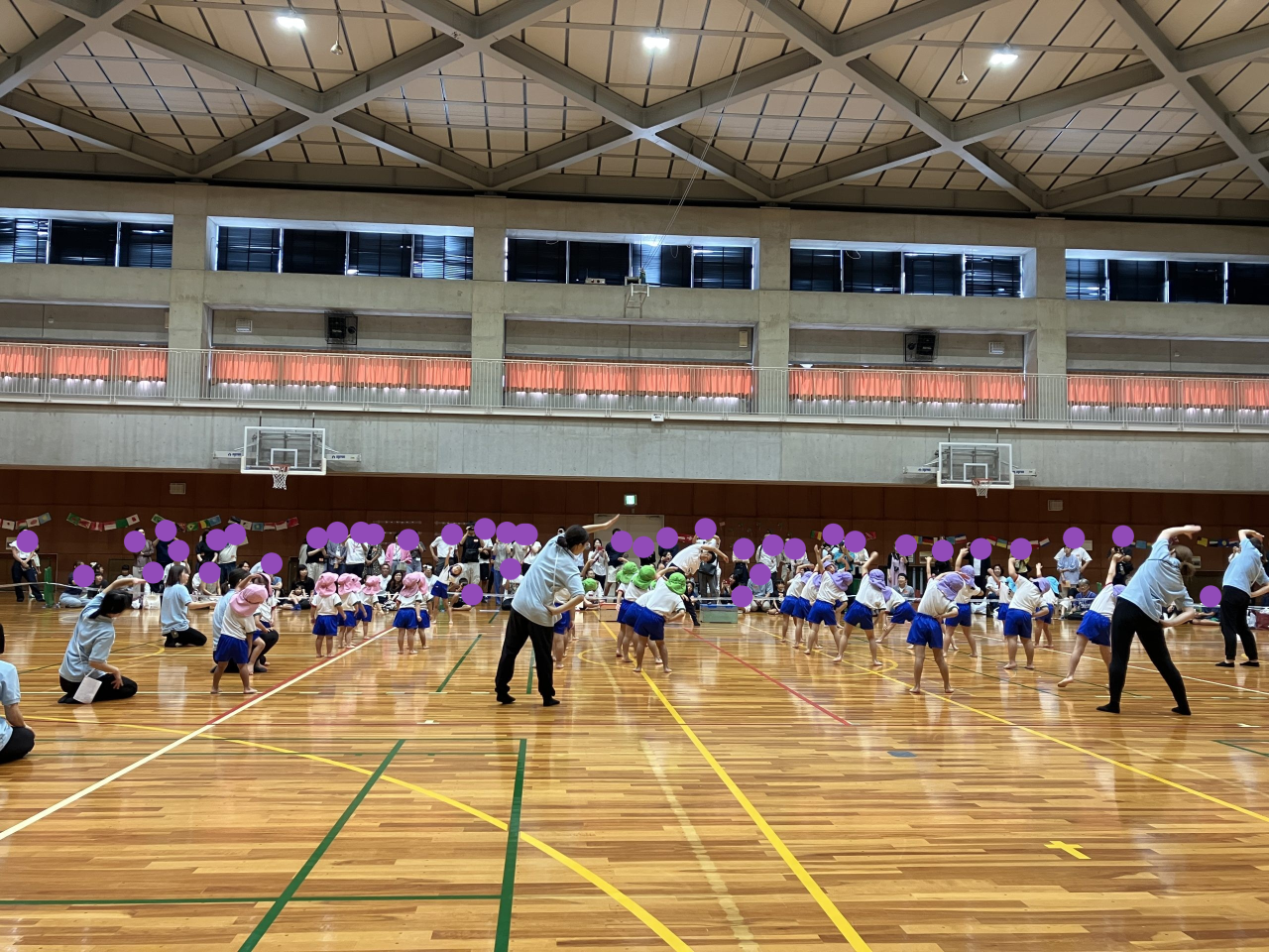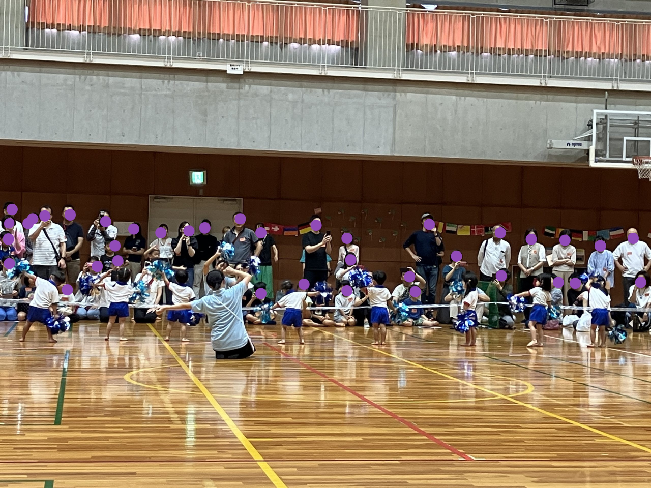 1曲目きりん組はポンポンを持って、らいおん組は手首にキラキラを付けてダンスをしました。かわいいくて元気いっぱいのダンスでした。