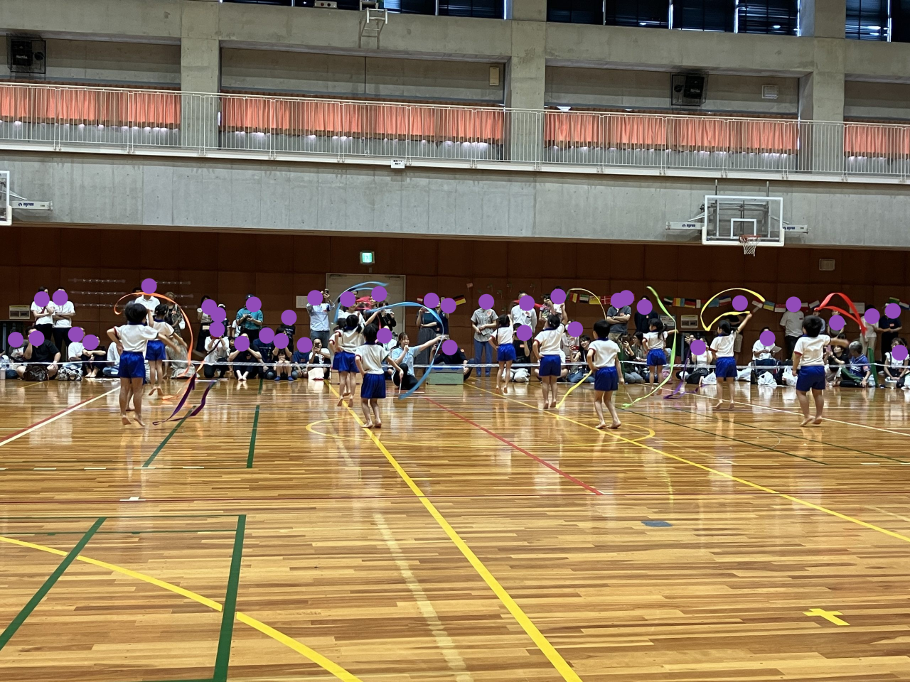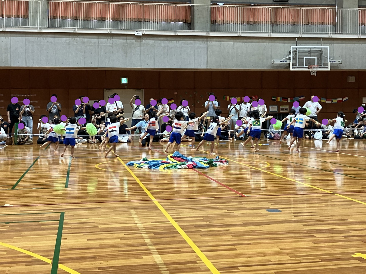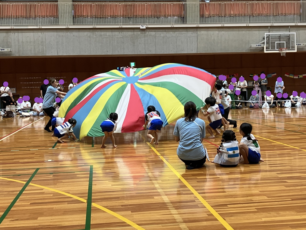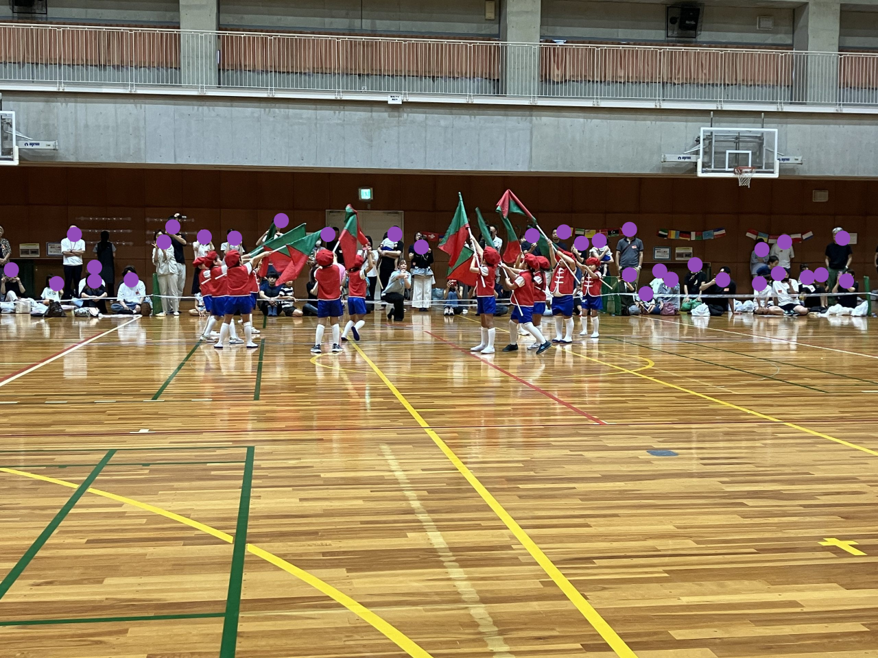 2曲目はきりん組はにミニフラッグ、らいおん組はパラバルーンに挑戦しました。たくさん練習したのが伝わってきました。