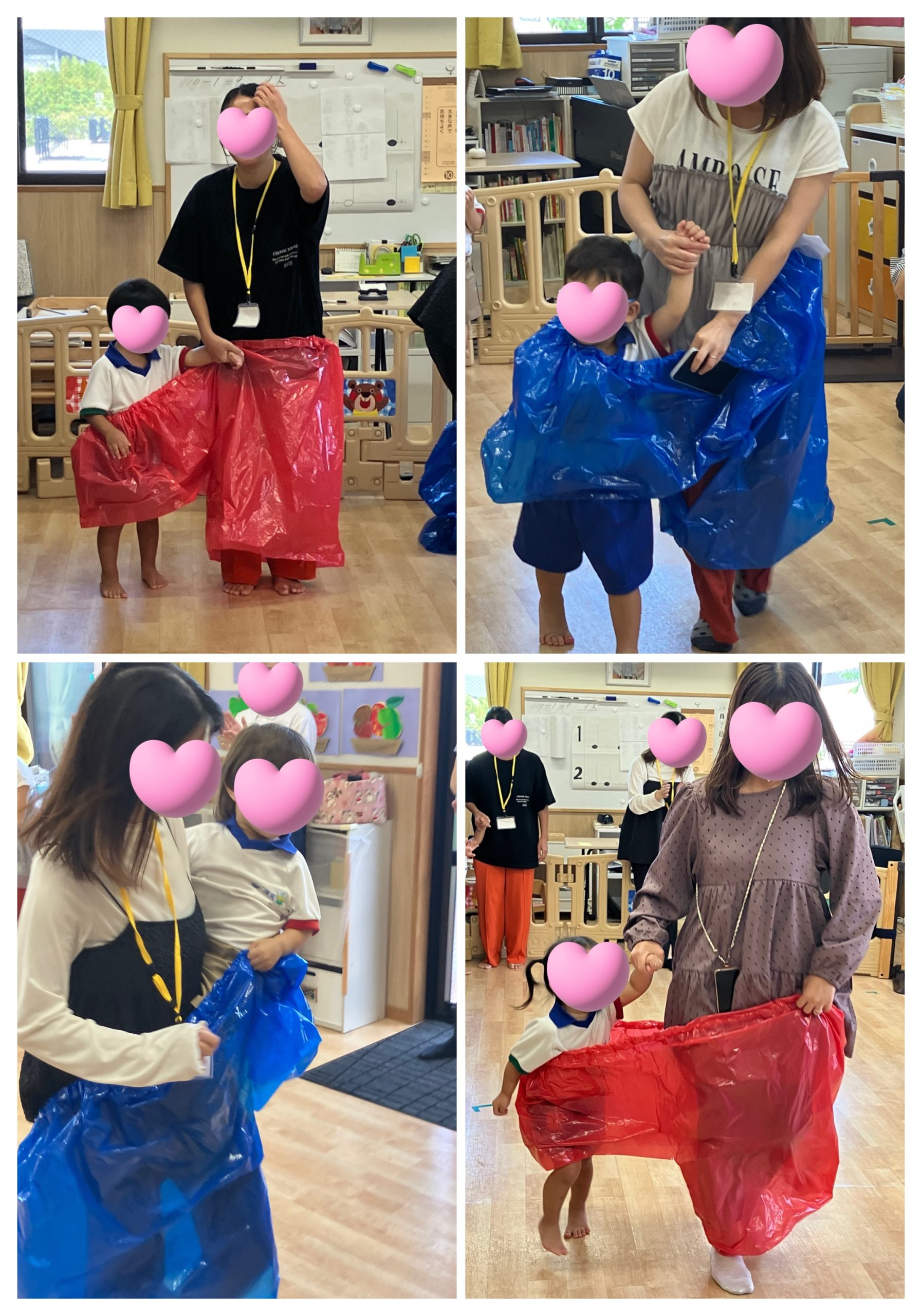 最初はいつもと違う雰囲気に子どもたちも戸惑う姿もありましたが、製作をしたり親子競技をする中ですっかりいつもの姿を取り戻しました。