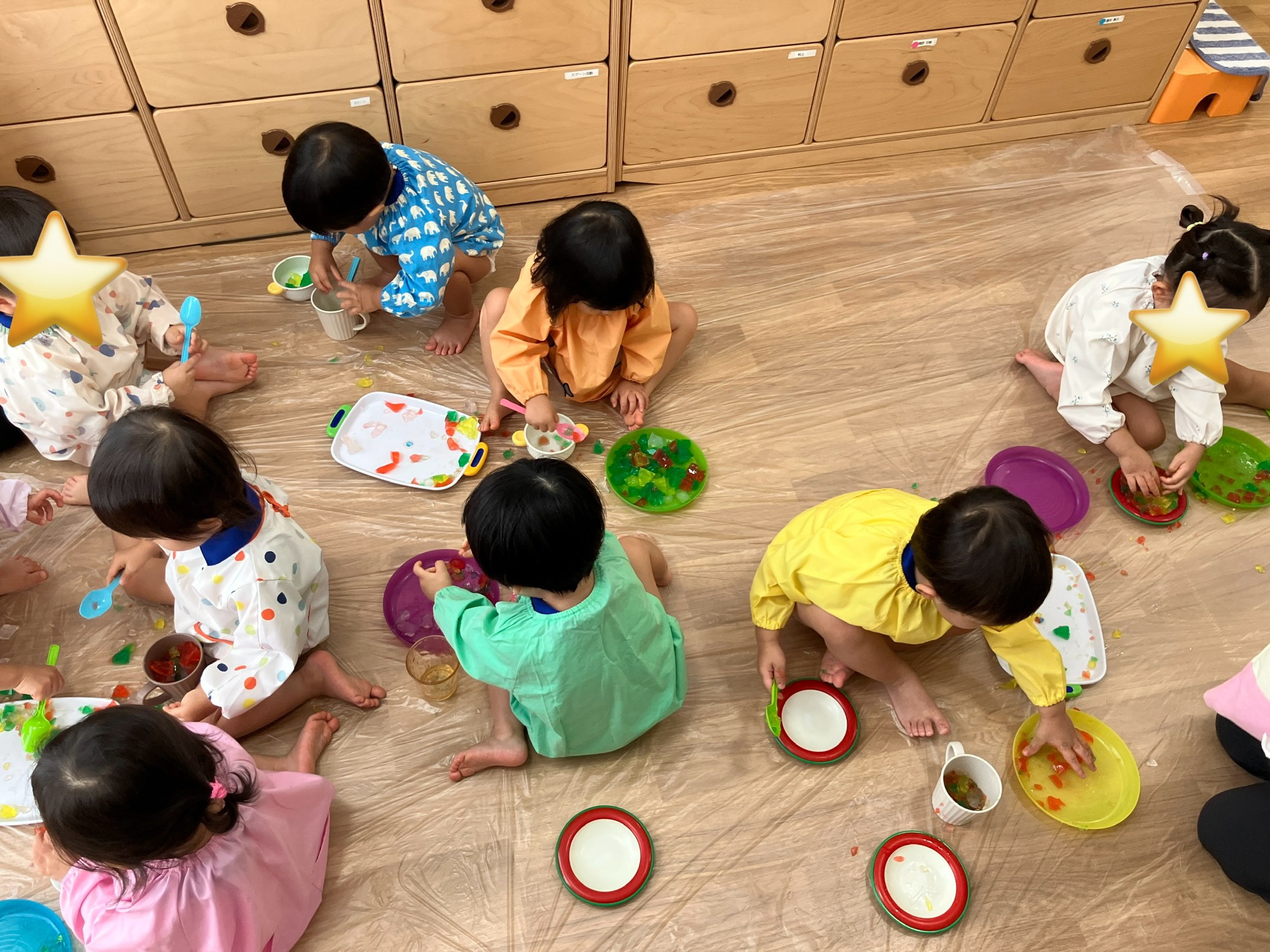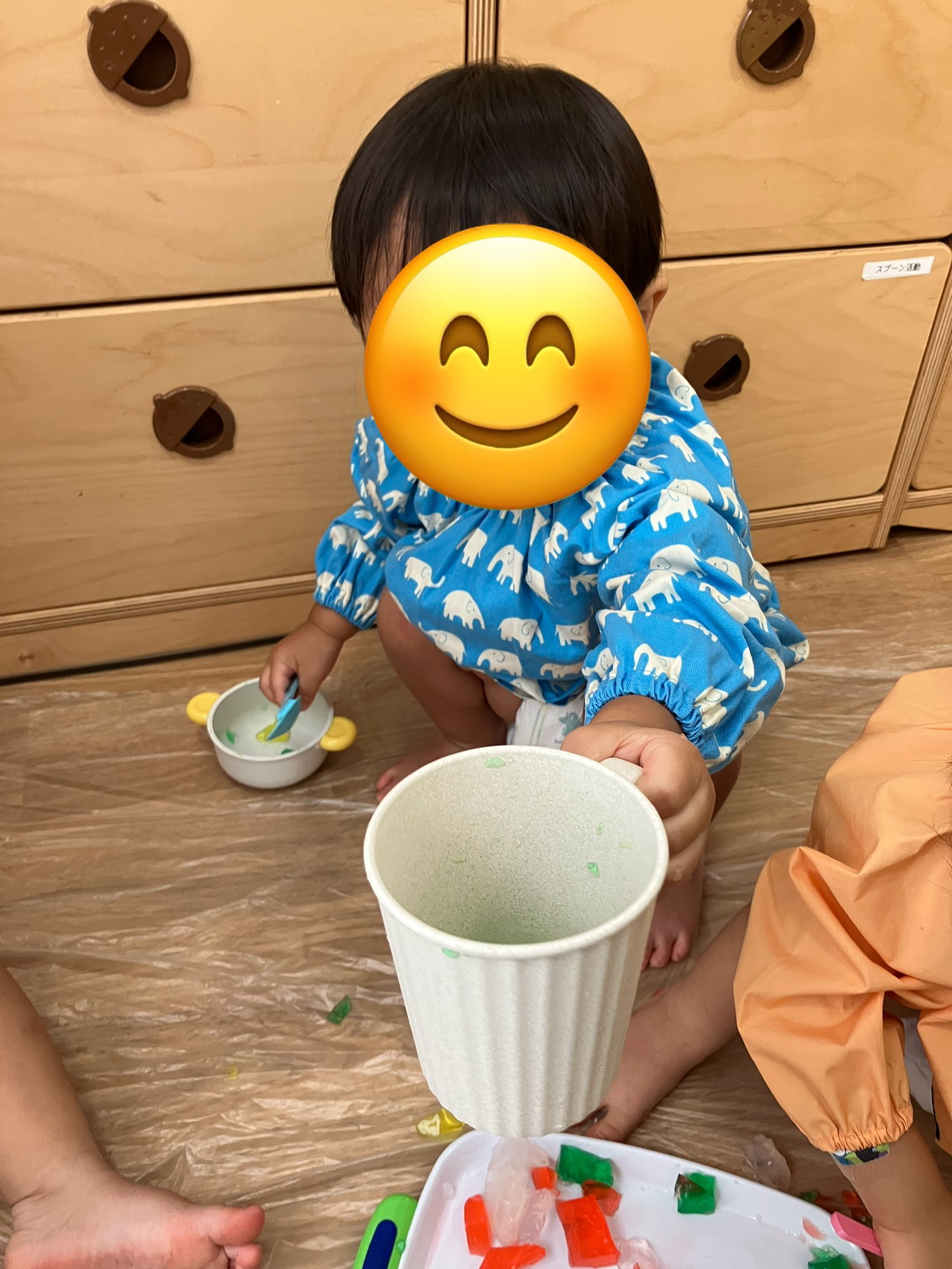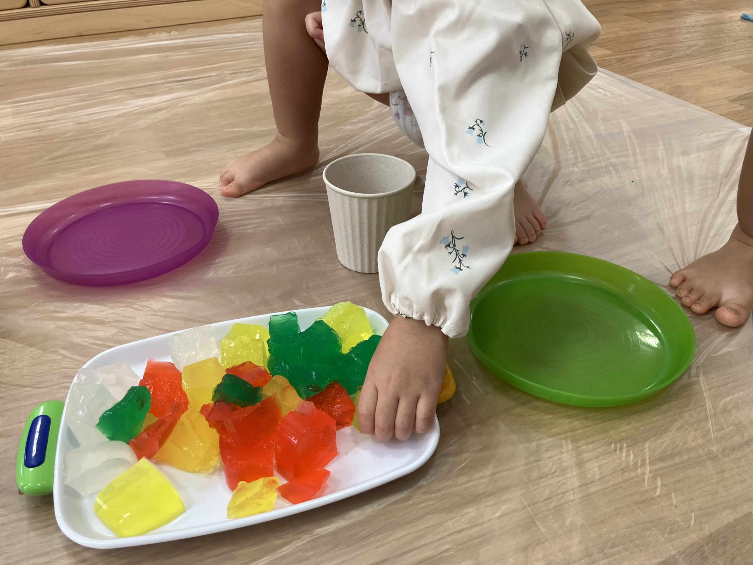冷たくてキラキラしている寒天に大喜びなうさぎ組さんでした☺