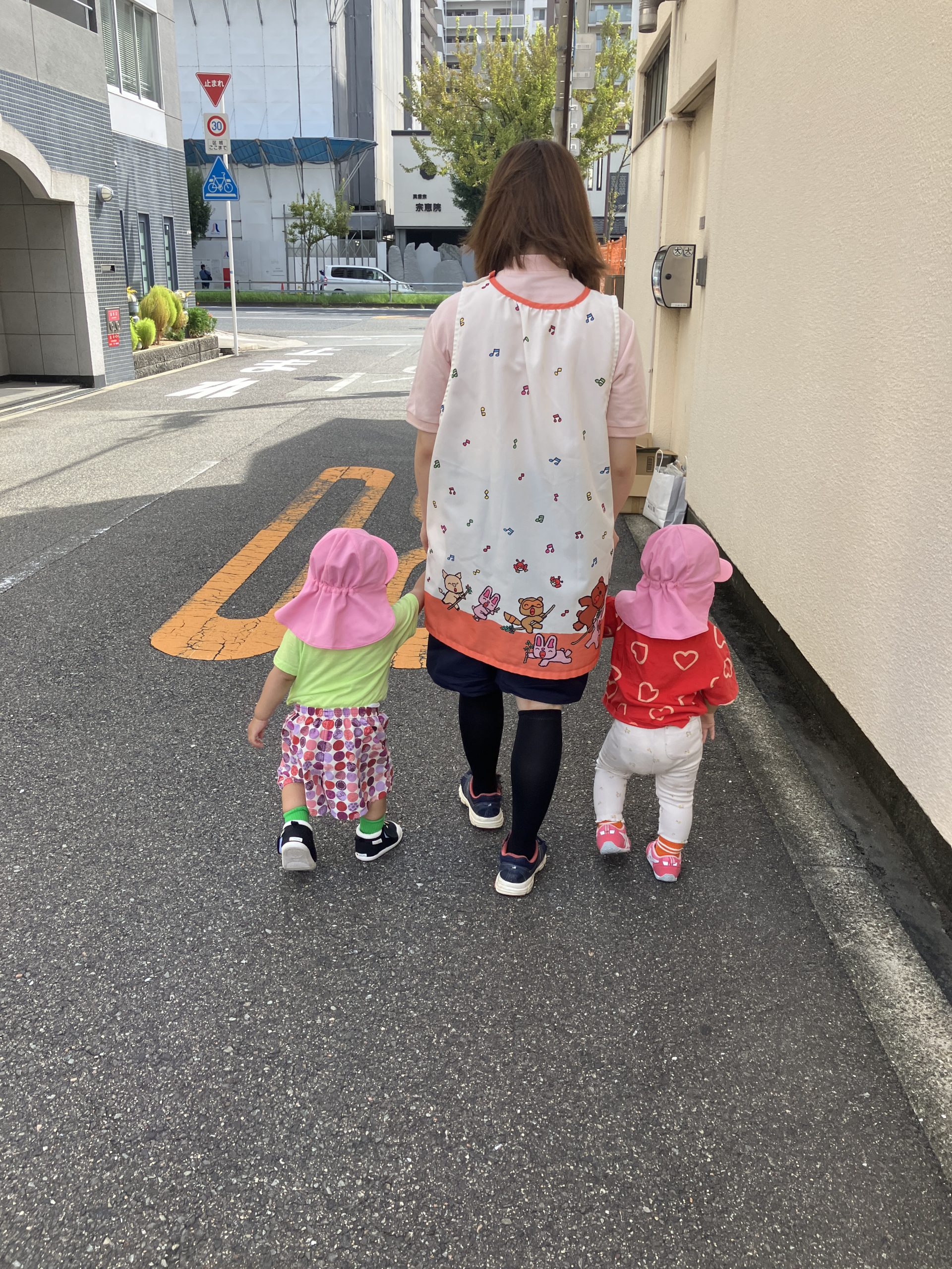 保育者としっかり手を繋いで、周りの景色を楽しみながら公園まで歩きます♪