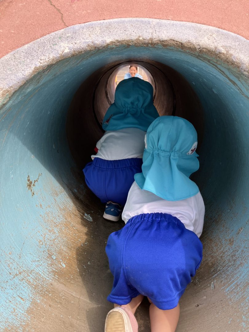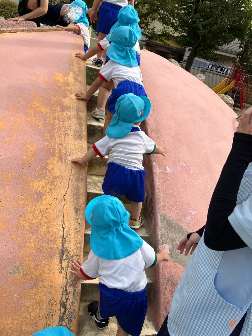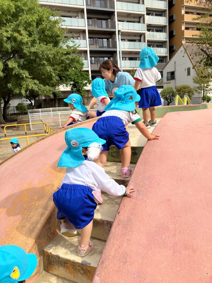 滑り台をしゅー!良いスピードでとっても楽しんでいました!