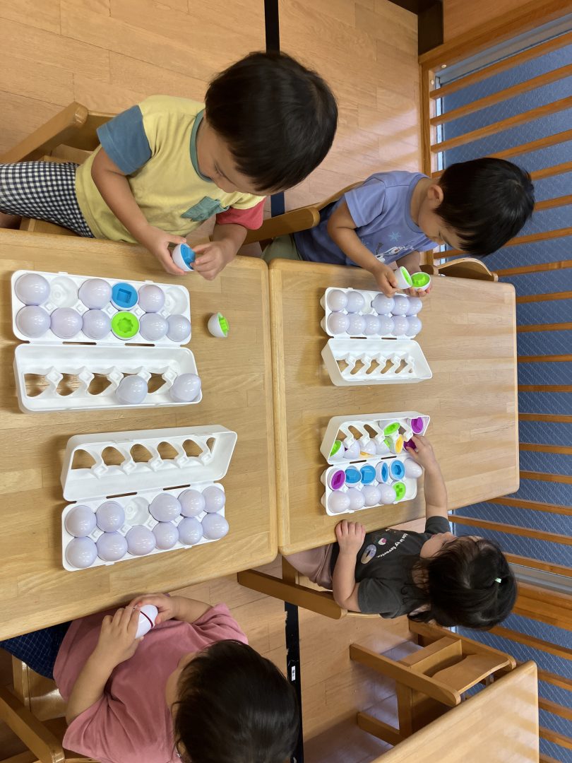 マッチングエッグコーナーは机上あそびとして取り入れています。
