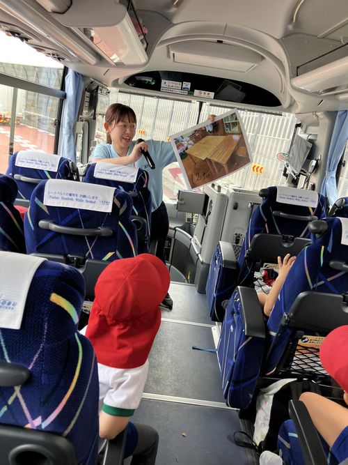 行きのバスでは、トンネルを抜けるまでの時間を予想したり、新幹線が止まっていることを見つけたりと大興奮の子どもたち。クイズもして楽しみました。