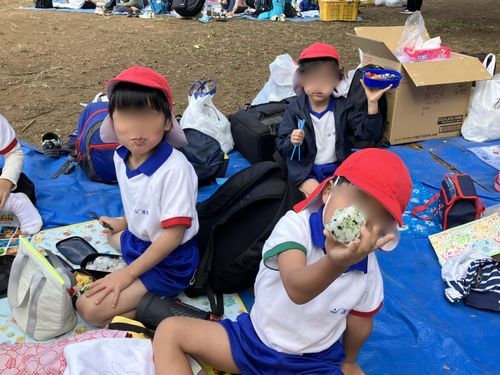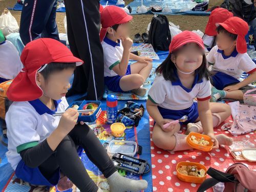 お友だちと並んで食べるお弁当は、いつもよりおいしく感じたようです。