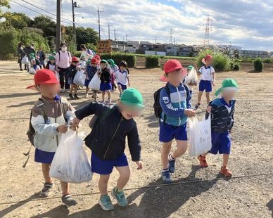 秋晴れの空の下、4歳そら組と5歳にじ組の子どもたちは、待ちに待った芋ほり遠足に出かけました。