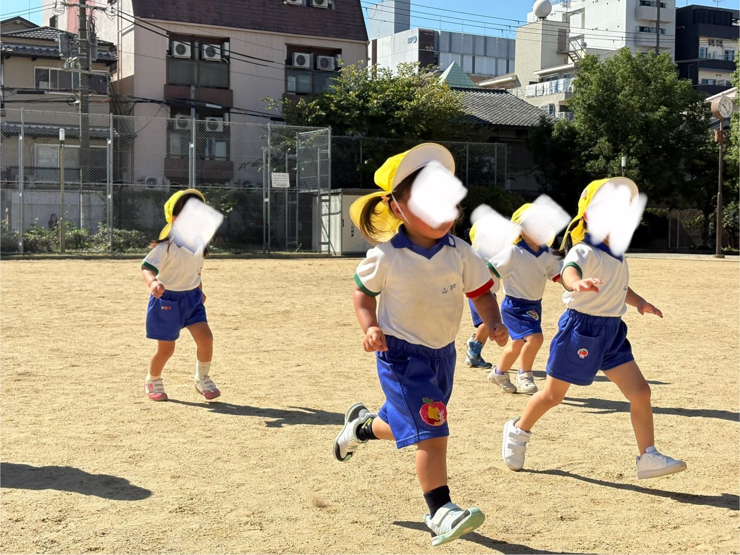 お友だちや先生を追いかけたり、追いかけられたりしながら、楽しく走っています。