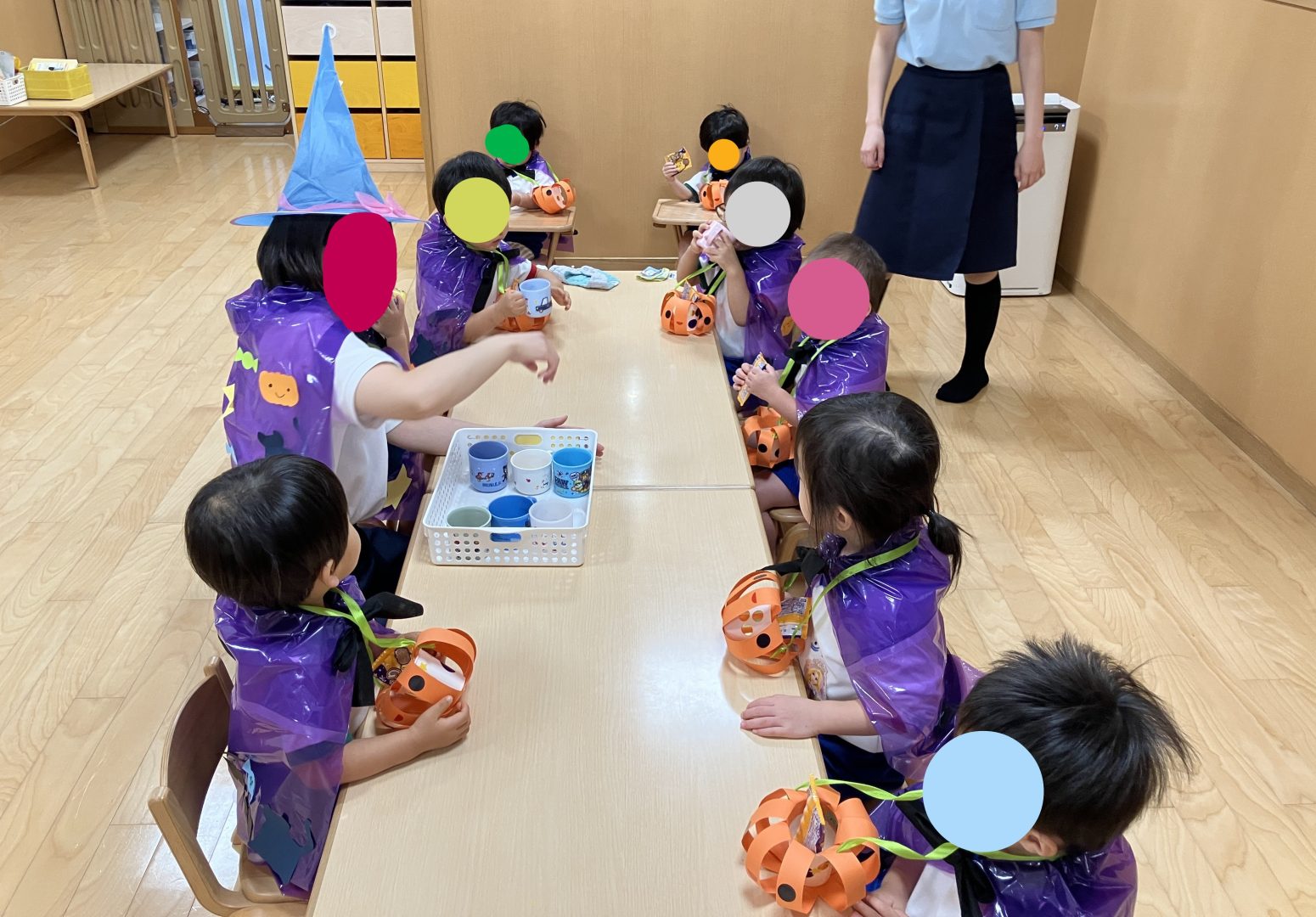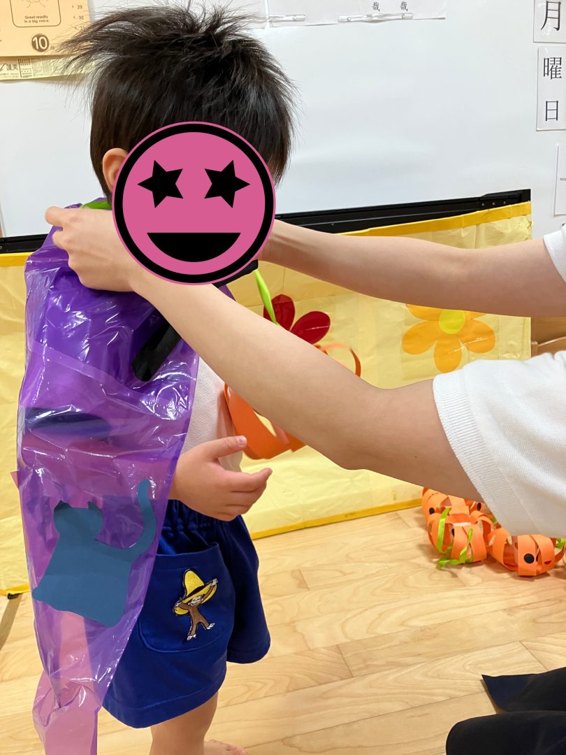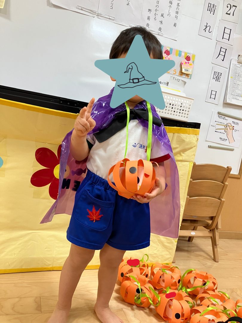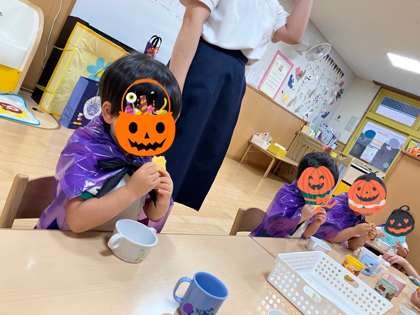 もうすぐハロウィンのため、保育園でハロウィンごっこ遊びを行いました。