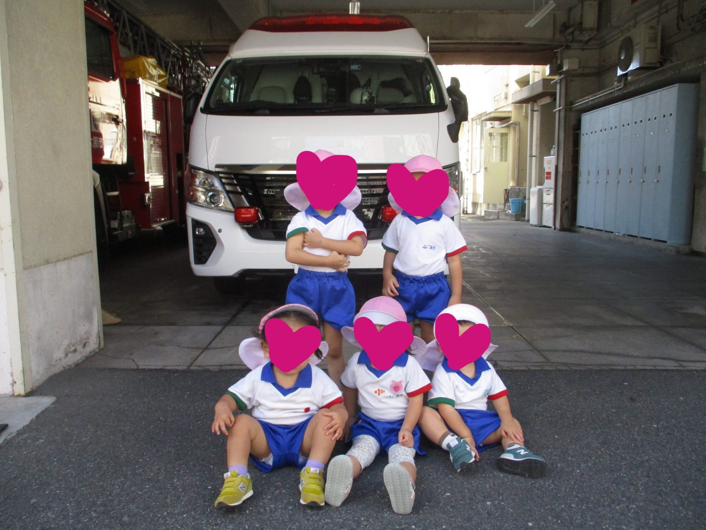 救急車の前で記念写真を撮りました!