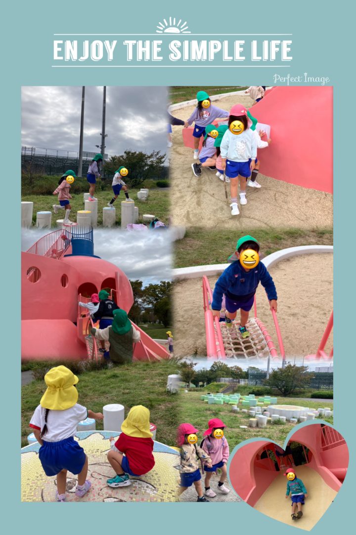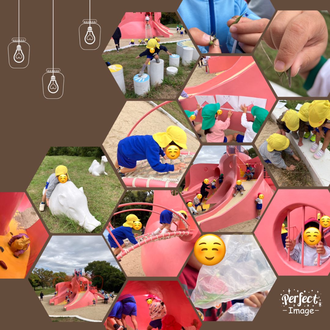 遊具で遊ぶ子や、虫取りに夢中になる子、鬼ごっこをする子たち。