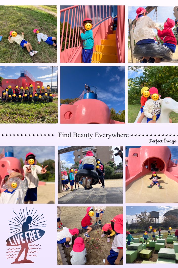 秋を探す姿や、遊具で遊ぶ姿がみられ、思い思いの遊びを楽しんでいました。