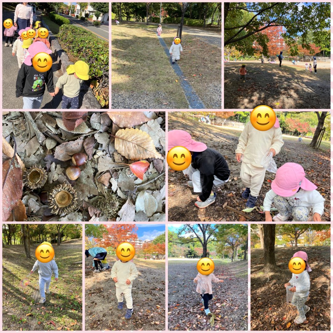 公園にはどんぐりや落ち葉などが落ちていてたくさん拾いました。