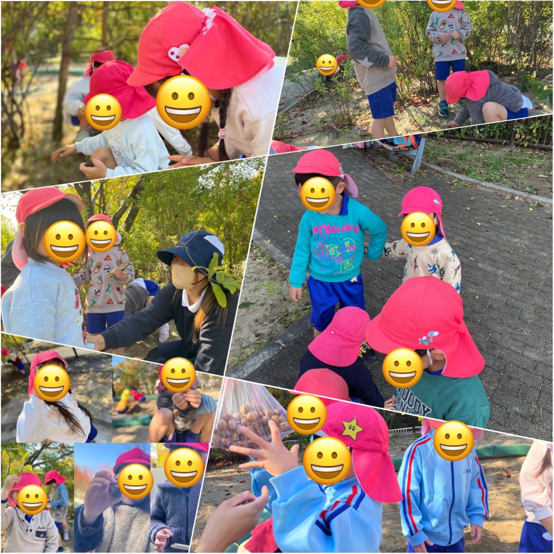 又、秋の楽しみであるどんぐり散策に夢中になる子も多く、お気に入りが見つかると「先生!撮って!」と見せてくれました。