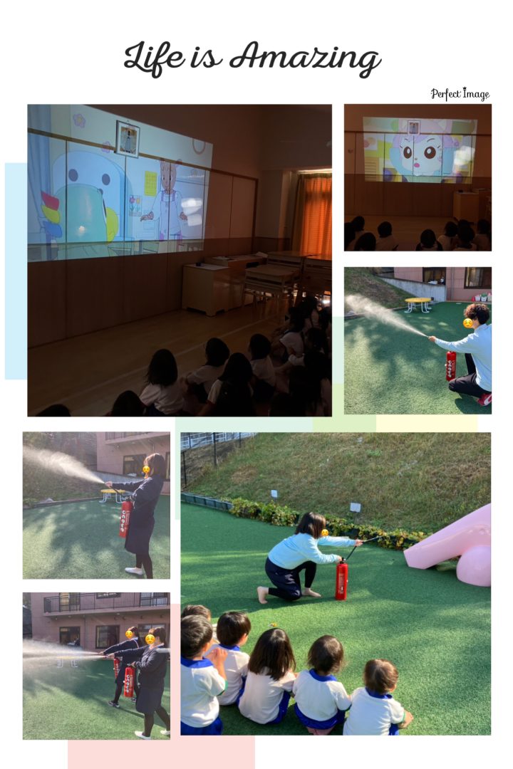 避難訓練、通報訓練、消火訓練をしました。