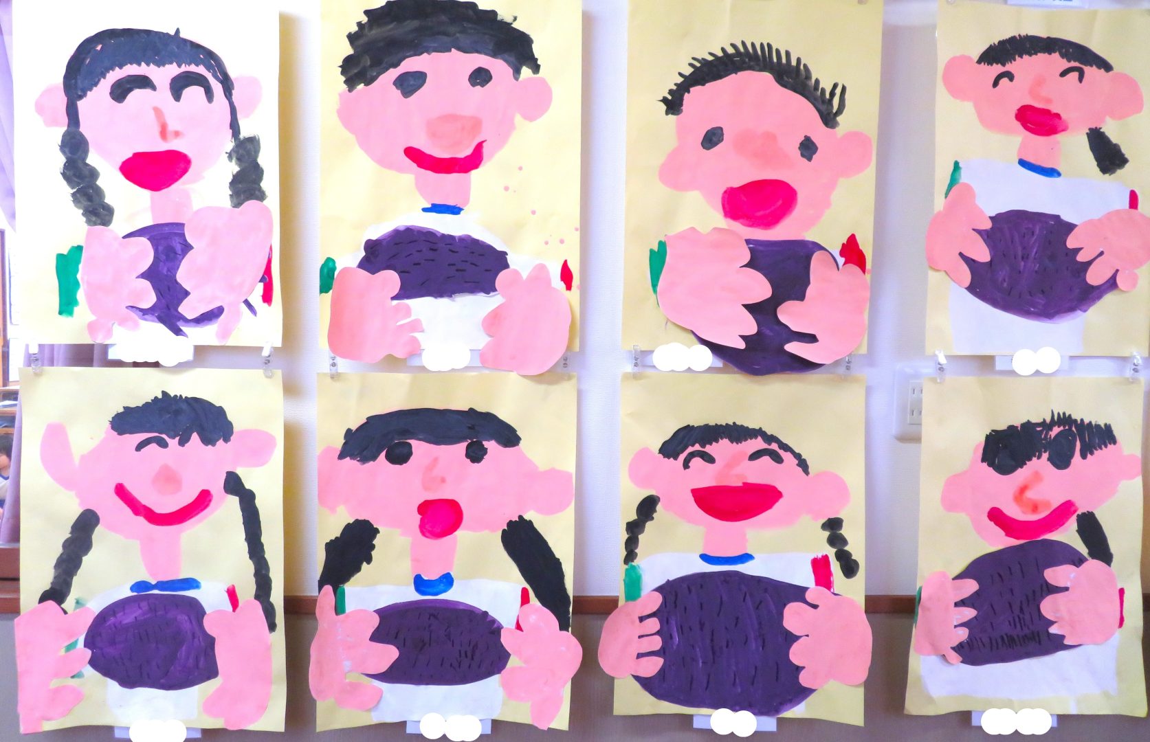 自分の顔や髪の毛の特徴をとらえながら、大きなさつまいもを持った絵が出来上がりました!