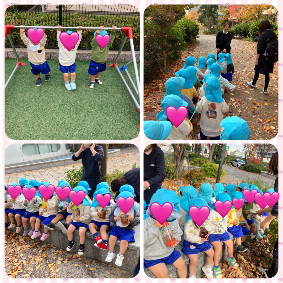 葉っぱの色が赤いね〜と、季節の移り変わりを感じている子どもたちです☆
