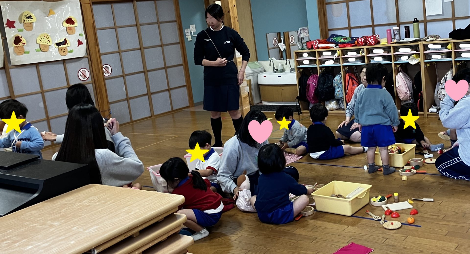 1歳から5歳までのクラスに5~6人ずつ入ってもらい、一緒に遊びました。