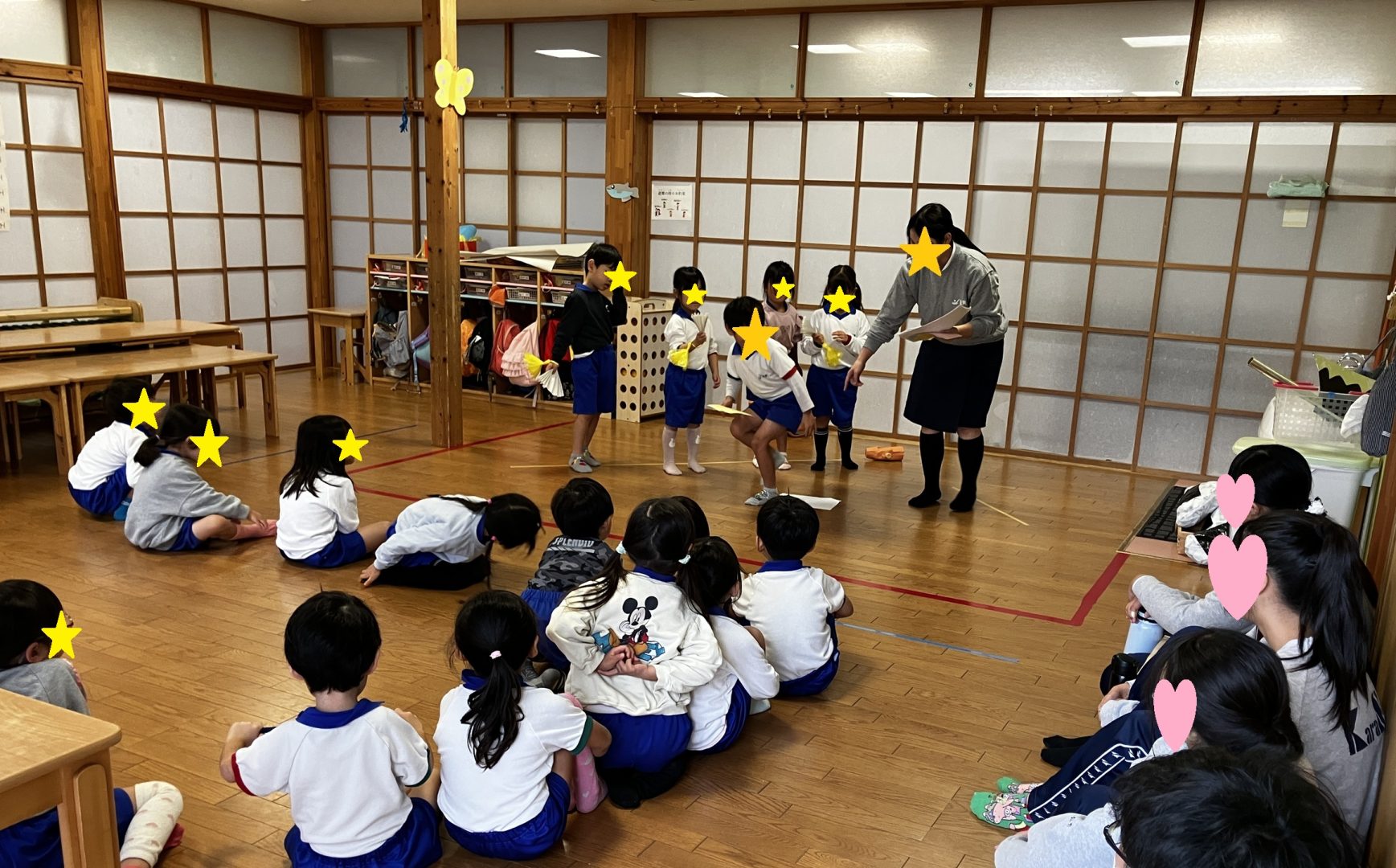人見知りをする子が多いクラスでしたが、一緒に体を動かしたことで親しみを持った様子でした。