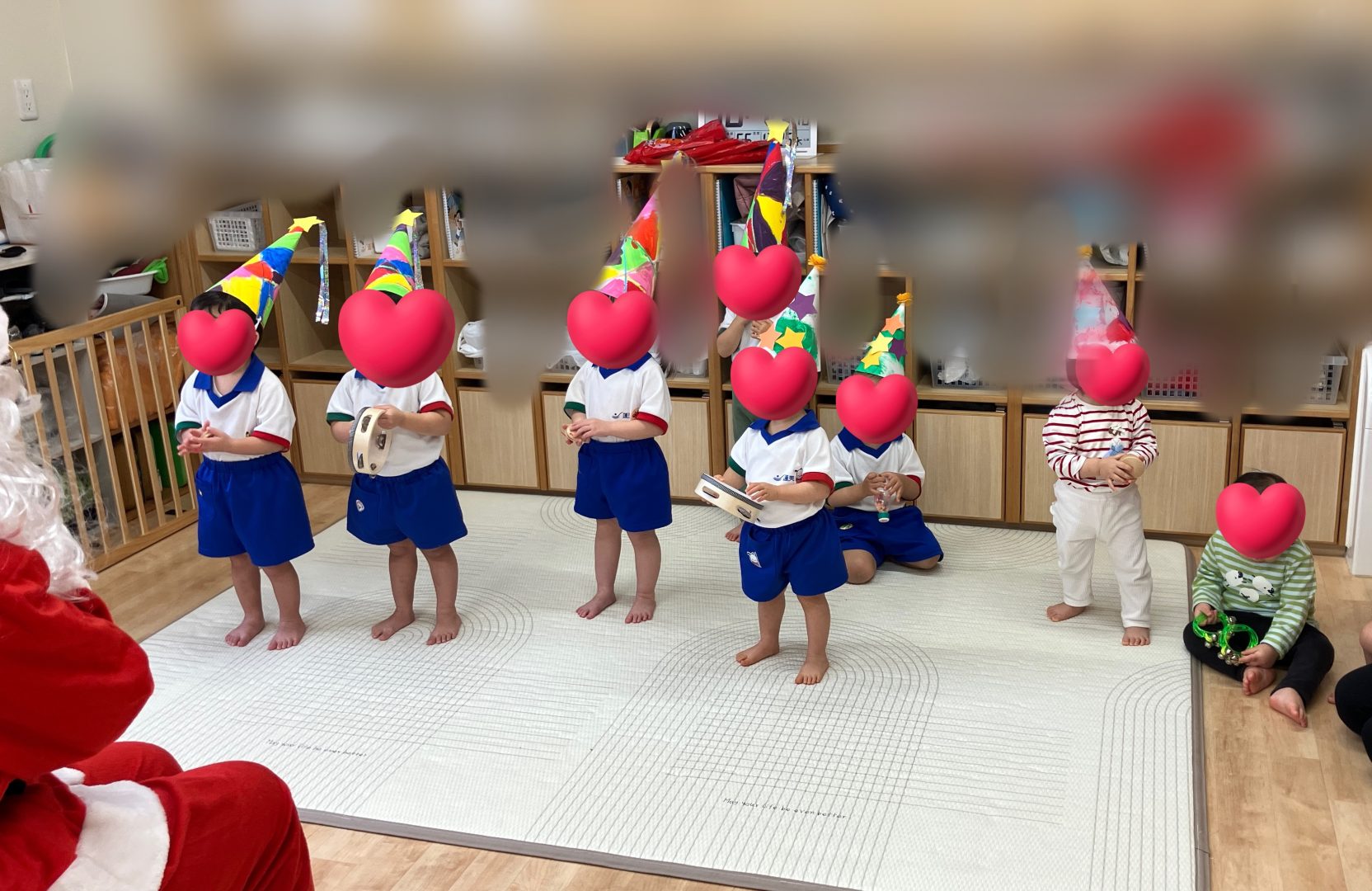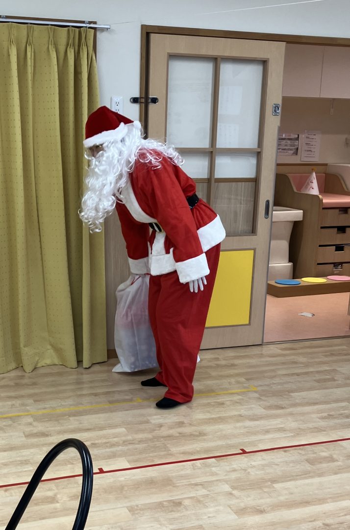 昨日はクリスマス。みんなで遊んでいると外から鈴の音が・・・プリメールにサンタさんが来てくれました。