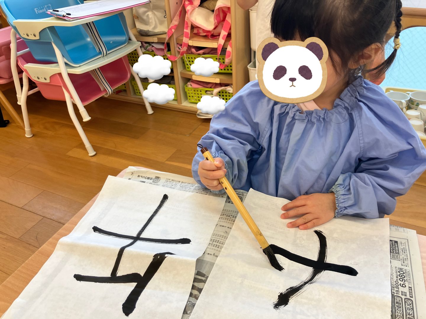 ぱんだ組さん、ちょっと早めの書き初め遊びをしました。