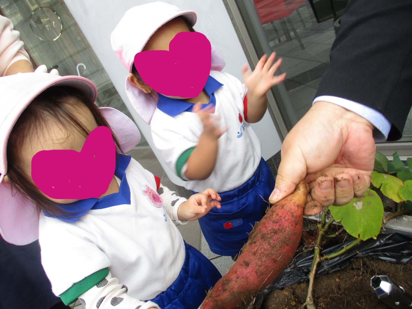 最初、土からお芋が出てきたときは少し不思議そうでしたが、