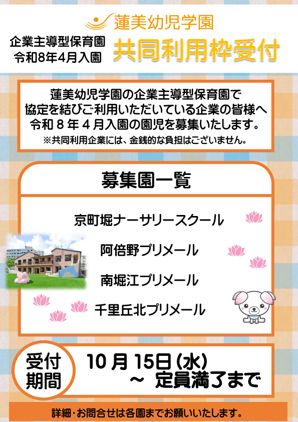 【蓮美】企業主導型保育園共同利用枠の受付について